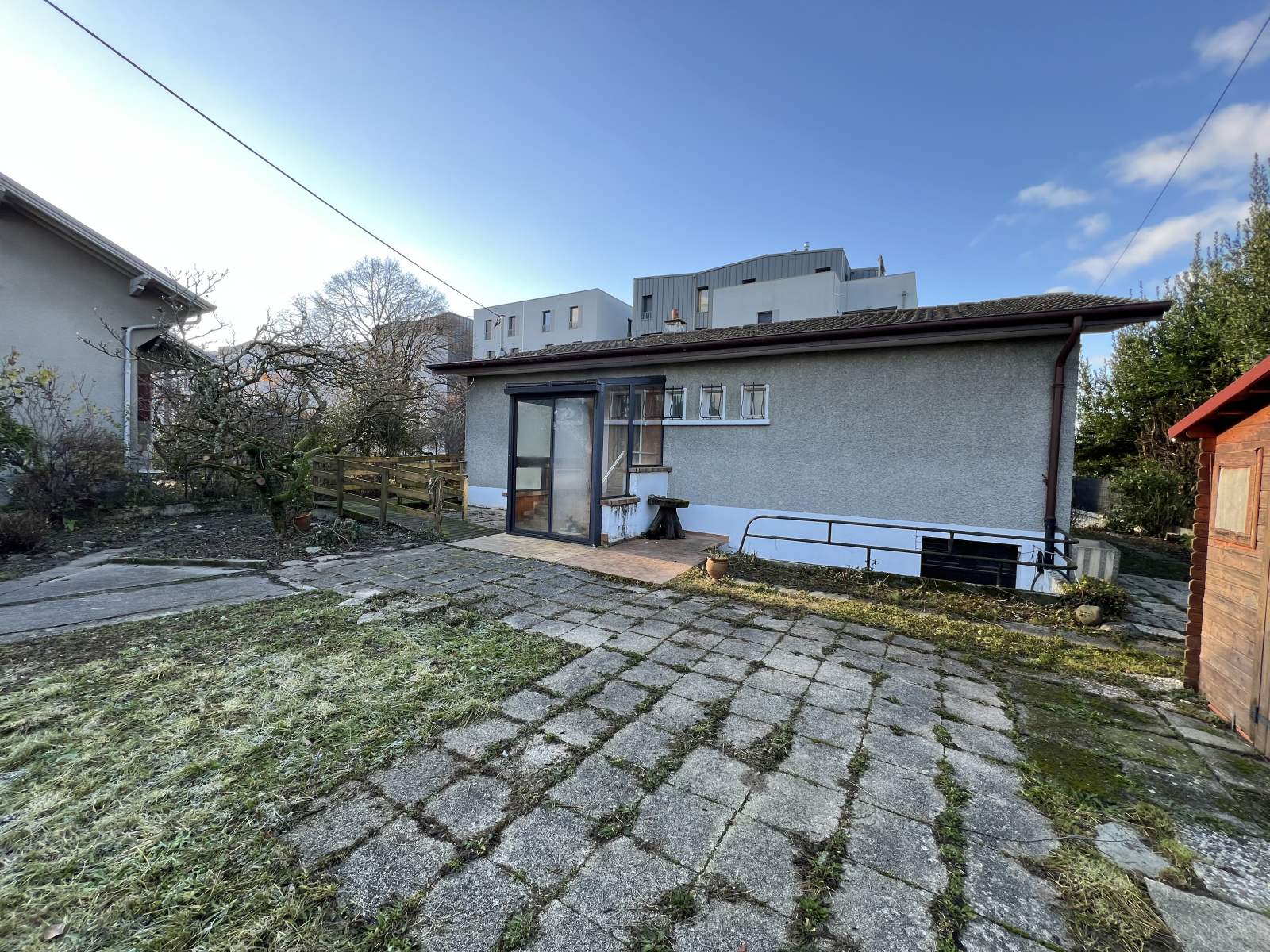 VILLE-LA-GRAND, MAISON A RÉNOVER SUR UN TERRAIN CONSTRUCTIBLE DE 728 M², 82 M² HABITABLES + 82 M² DE SOUS-SOL. SALON, CUISINE SÉPARÉE AVEC EXTENSION, 3 CHAMBRES, 1 SALLE DE BAIN, 1 WC, SOUS-SOL COMPLET DE 5 PIECES, GARAGE EXTERIEUR + ATELIER + CABANON DE JARDIN.