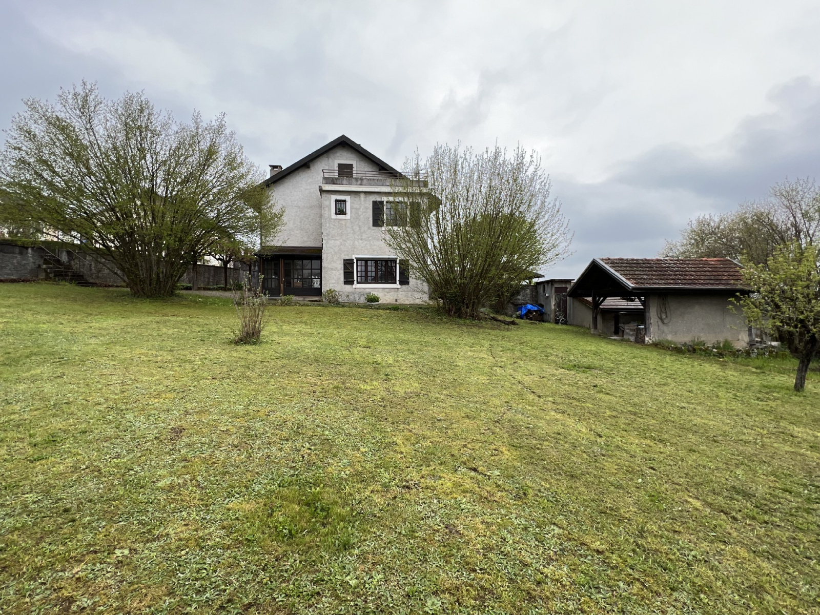 COLLONGES-SOUS-SALEVE, FACE AU LAC LEMAN, SUPERBE DEMEURE CONSTRUITE EN 1880, DE 185 M² HABITABLES ENVIRON PLUS COMBLES AMÉNAGEABLES DE 85 M² SUR UNE PARCELLE DE TERRE CONSTRUCTIBLE DE 1359 M², VUE IMPRENABLE SUR LE JURA ET LE LAC, BEAUCOUP DE CHARME, CHAUFFAGE PAR CHEMINÉES + RADIATEURS, 5 CHAMBRES, DEUX SALLES DE BAINS, DEUX WC, CAVE, TERRAIN ARBORÉ, SECTEUR RÉSIDENTIEL CALME ET PROCHE FRONTIÈRE, COUP DE COEUR ASSURÉ.