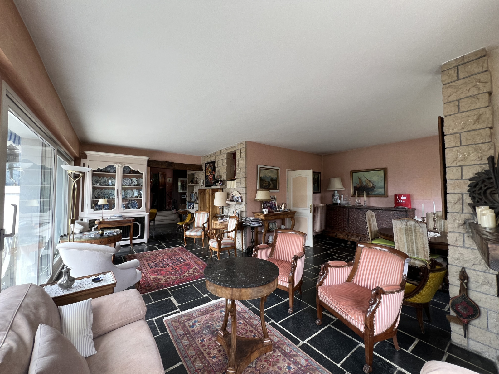 AU REZ-DE-CHAUSSÉE : SALON AVEC CHEMINÉE ET SALLE A MANGER, BELLE TERRASSE, CUISINE SEPARÉE, SUITE PARENTALE, 2 CHAMBRES, UN BUREAU, WC SEPARÉ ;