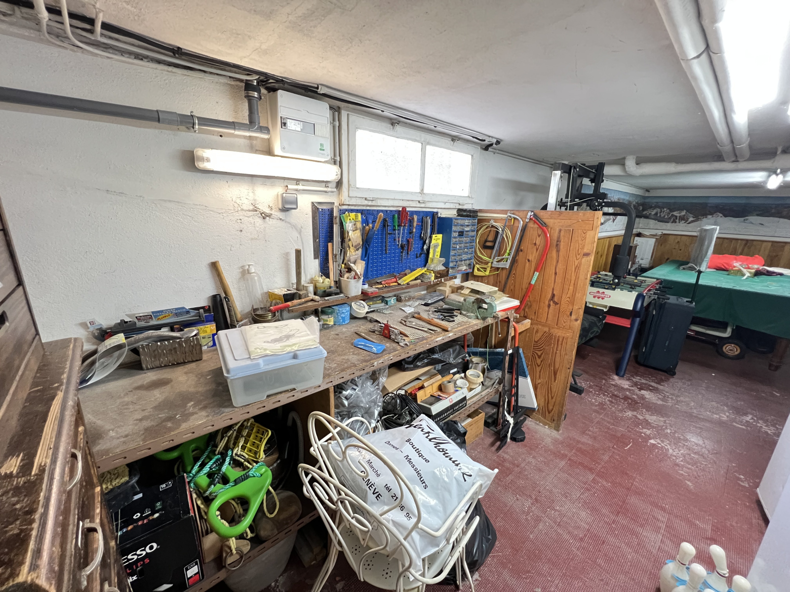 AU SOUS-SOL : GRAND GARAGE, 2 BUANDERIES, ATELIER + SALLE DE JEUX, GRANDES CAVES.